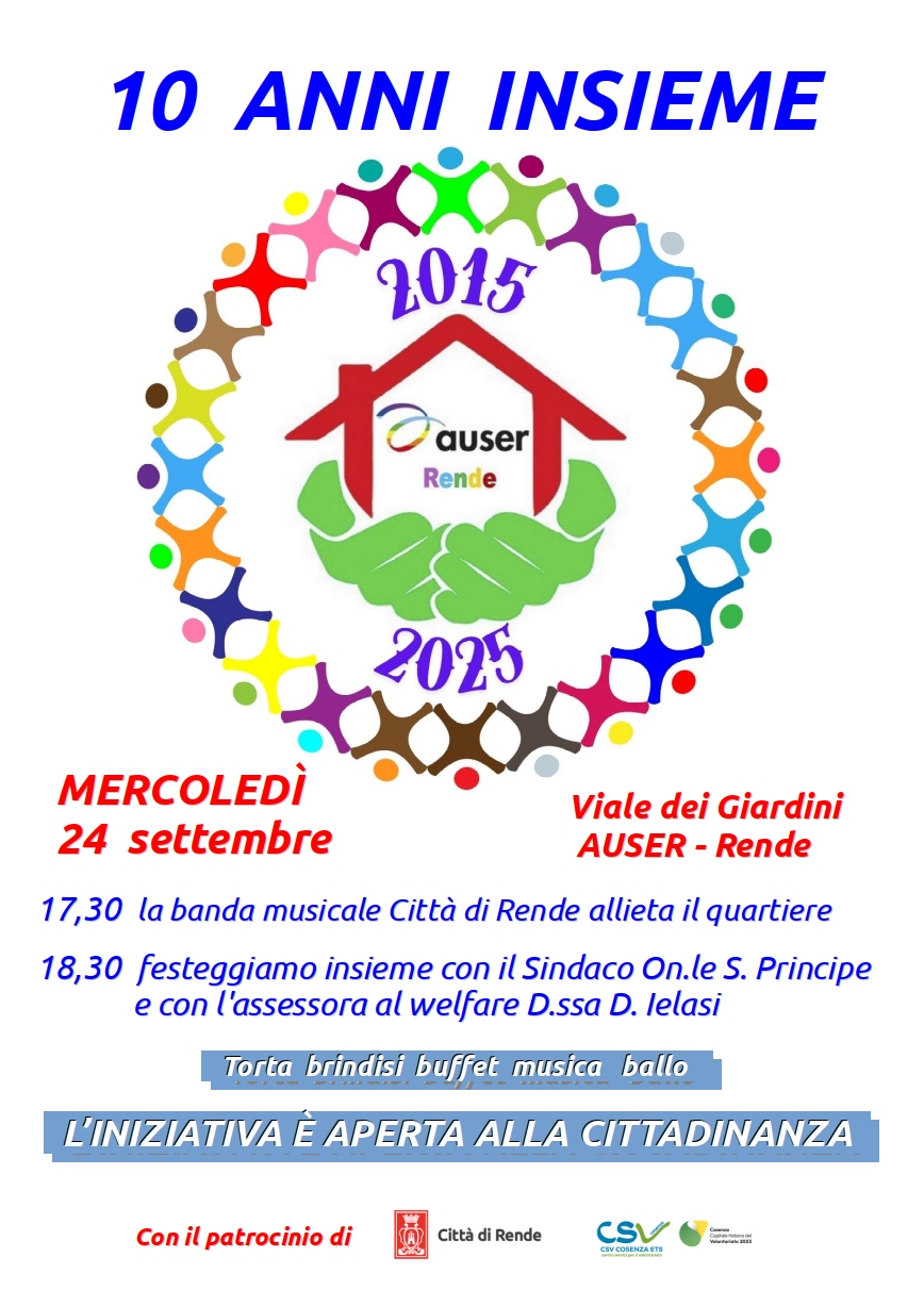 siamo lieti di comunicare che l'Auser di Rende ha ottenuto il bollino blu per le attivita svolte nell'anno 2024;